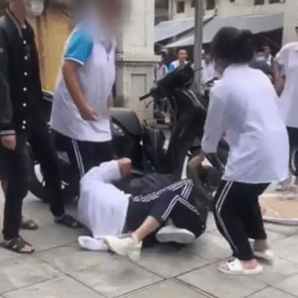 Cũng trong đoạn clip trên, lúc cuộc ẩu đả xảy ra thì có khá đông học sinh và người đi đường đứng xung quanh theo dõi. Tuy nhiên hầu hết chỉ đứng xem và dùng điện thoại quay clip.