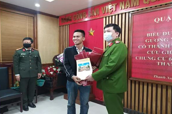 Để biểu dương tinh thần dũng cảm và nhanh trí của anh Mạnh, vào chiều qua 1/3, Công an quận Thanh Xuân, Hà Nội đã tổ chức lễ biểu dương khen thưởng đối với anh Nguyễn Ngọc Mạnh.