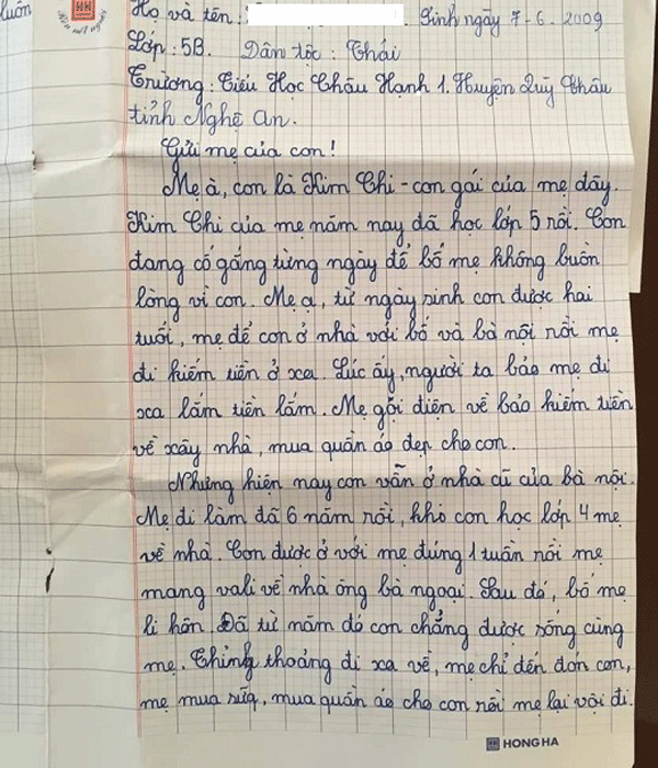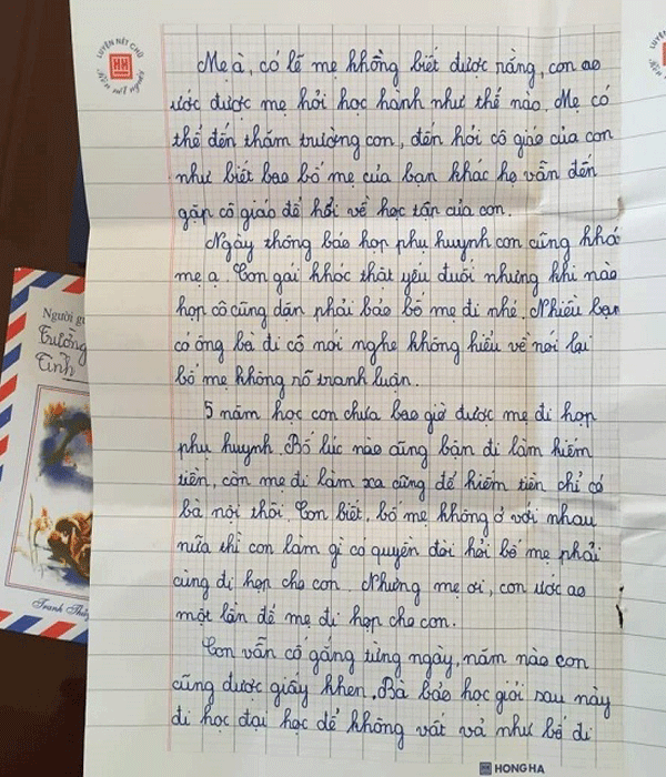 Nội dung bức thư vô cùng xúc động bé gái lớp 5 gửi mẹ