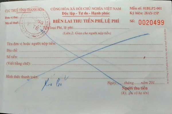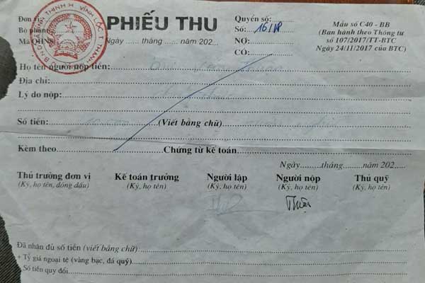 Phiếu thu không phải do ngành thuế phát hành được ông Tiến và ông Tân đưa cho PV, CTV khi chúng tôi công chức, chứng thực tại phòng giao dịch một cửa UBND xã Vĩnh Thịnh.