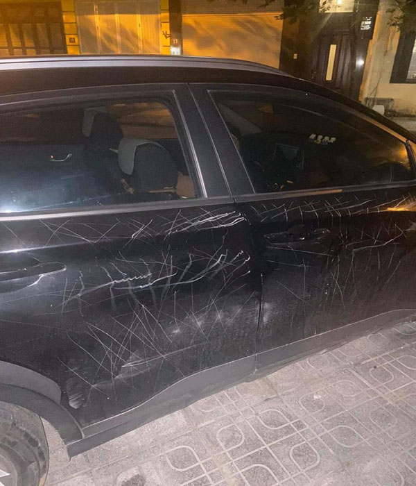 Kết quả là những vết xước chồng chéo nằm bên hông phải của chiếc xe. Người xem không khỏi xót của thay khổ chủ.