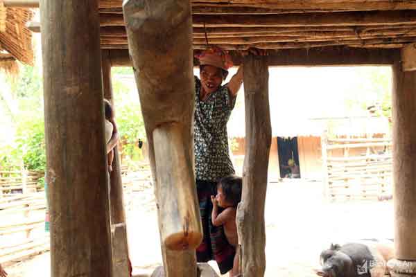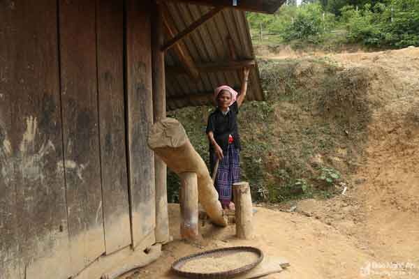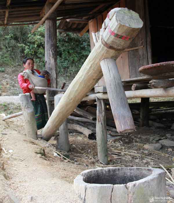 Chiếc cối tròn miệng rộng này là hình ảnh quen thuộc, dễ dàng bắt gặp dưới nhà sàn của đồng bào dân tộc miền Tây xứ Nghệ hiện nay. Ảnh: Hồ Phương