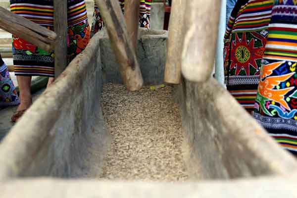 Giã gạo bằng tay là truyền thống lao động vẫn được bảo tồn đến tận ngày nay. Ảnh: Hồ Phương