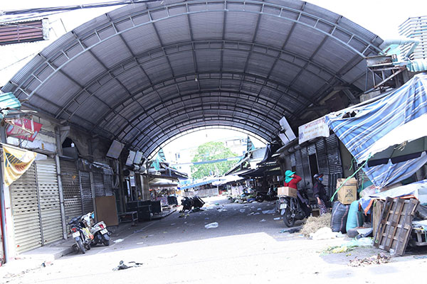 Không còn cảnh nhộp nhịp, tấp nập người bán người mua, chợ đầu mối lớn nhất ở thành phố Vinh, Nghệ An vắng lặng, đìu hiu sau khi ghi nhận 3 tiểu thương dương tính với SARS-CoV-2.