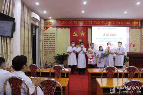 Trong sáng ngày 19/8, Bệnh viện Sản Nhi Nghệ An đã tổ chức lễ ra quân cho 2 cán bộ y tế tăng viện cho thành phố Đà Nẵng phòng chống dịch Covid-19. Hai cán bộ xung phong, tình nguyện và được Bệnh viện cử tăng viện lần này đều ở Khoa Xét nghiệm, đó là: Bác sĩ Cao Thị Kim Băng và kỹ thuật viên Nguyễn Viết Minh.