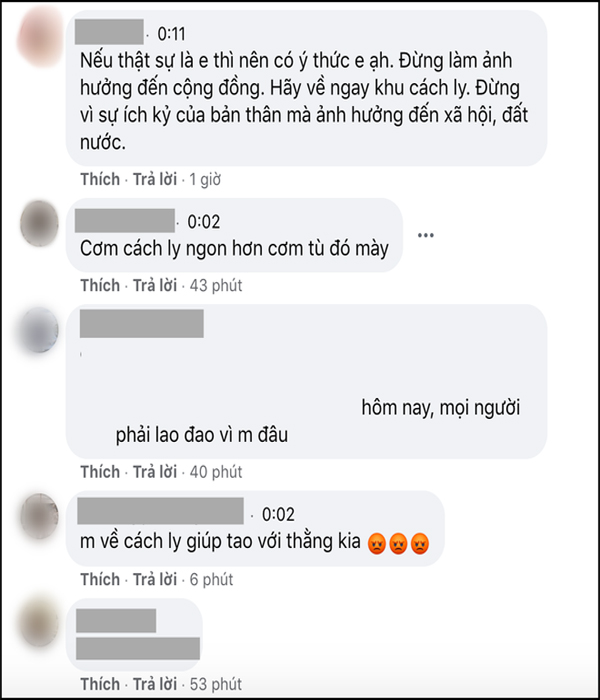 Cộng đồng mạng đã nhanh chóng tìm ra tài khoản Facebook được cho là của nam thanh niên trốn cách ly tại Khánh Hoà, liên tục để lại nhiều bình luận thể hiện sự bức xúc. Cô gái người yêu của nam thanh niên cũng bị réo tên liên tục.