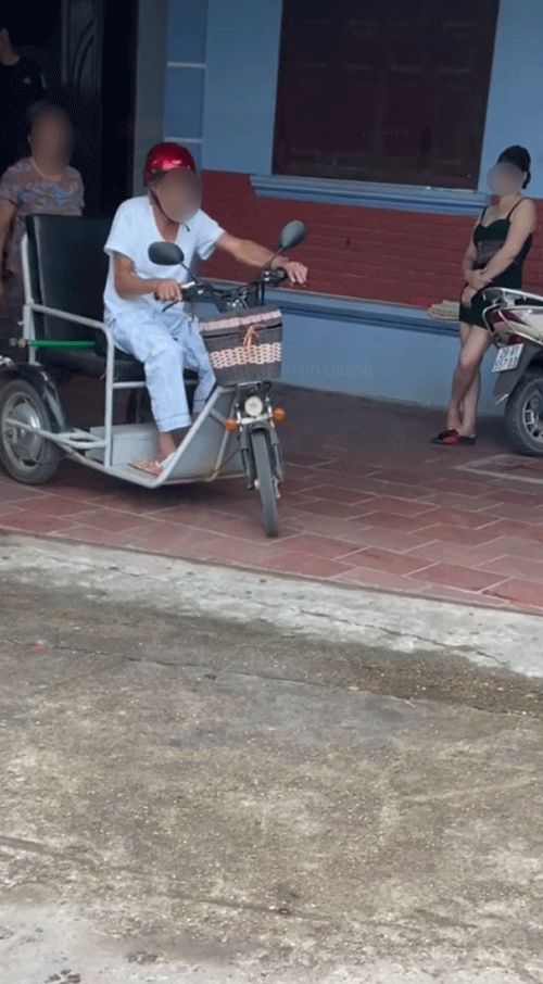 Cụ ông được cô nhân viên dìu đi thư giãn