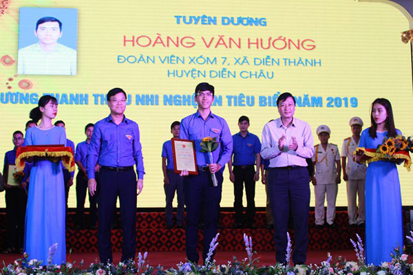 Hoàng Văn Hướng được vinh dự là một trong 15 thanh thiếu nhi tiêu biểu năm 2019 được tỉnh đoàn Nghệ An tuyên dương