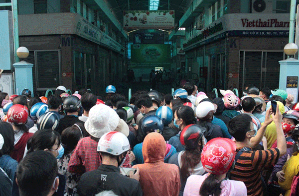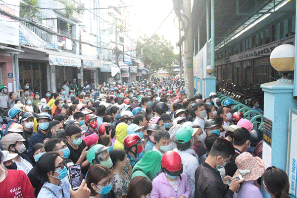 Nhiều người trẻ đã ròng rã, chầu chực tại chợ sỉ thuốc tây lớn nhất TP.HCM trên đường Nguyễn Giản Thanh Q.10, TP.HCM vào sáng sớm ngày 16.2 để mua được khẩu trang y tế phòng chống dịch bệnh Covid - 19.