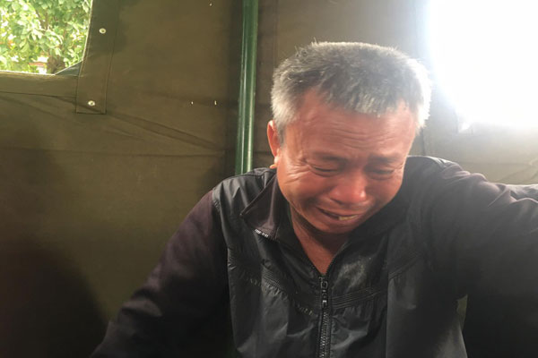 Ông Lê Đình Huấn, bố chiến sĩ Lê Tuấn Anh (20 tuổi, Quảng Trị) như không nhấc nổi chân bước ra khỏi xe cấp cứu. Sáng hôm qua, khi hay tin con gặp nạn, hai vợ chồng đã lên đơn vị con. Hai vợ chồng già vẫn mong có phép màu cho đến sáng hôm nay, thi thể con được tìm thấy, ông bà đã đổ gục. Ai ngờ được chuyến đi cuối cùng với con lại trên chiếc xe cứu thương còi hú đến xé lòng.