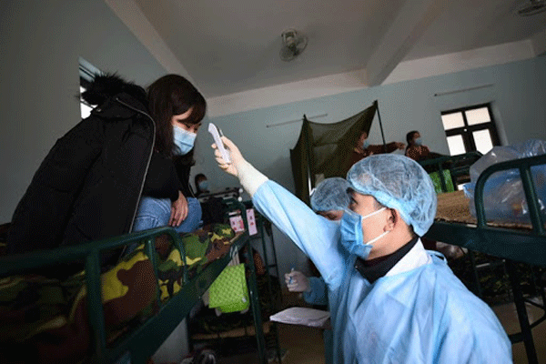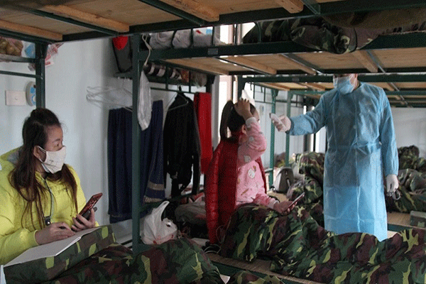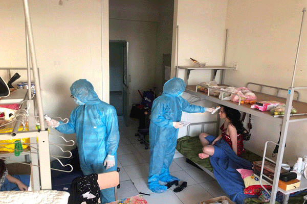 Các nhân viên y tế đo nhiệt độ 2 lần/ngày cho người cách ly. Ảnh: NVCC.