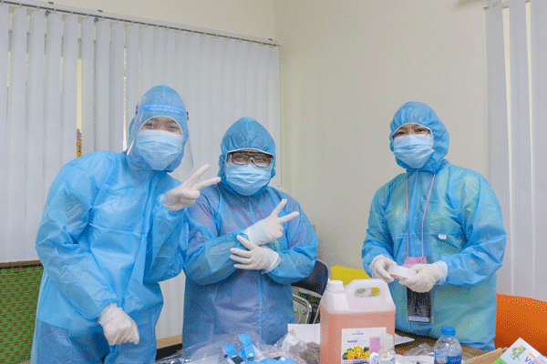 Các nhân viên y tế làm tình nguyện tại Khu cách ly Ký túc xá Đại học Quốc gia TP.HCM. Ảnh: N.T.H.