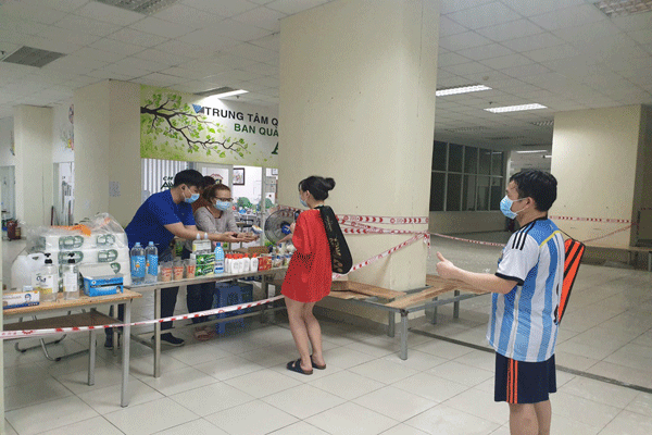 Sẵn có bàn tư vấn, trong khi người bệnh thì ít, nhu cầu thiết yếu thì nhiều, nên các nhân viên y tế quyết định kiêm luôn vị trí… nhân viên tạp hóa để phân phát đủ thứ cho người cách ly. Tất cả đều miễn phí.