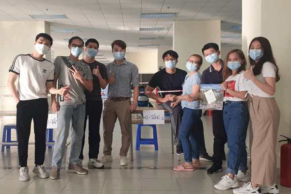 23 người phụ trách 1.700 người. Mỗi ngày, ngoài 2 cán bộ chỉ huy lo nhập liệu và giải quyết công việc, 21 nhân viên y tế còn lại đi đo thân nhiệt cho gần 1.700 người ở hai toà AH1, AH2, mỗi tòa 10 tầng. Mỗi ngày đo 2 lần sáng, tối, lần nào cũng phải 2 tiếng mới đo xong.