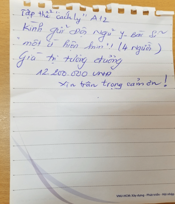 Bác sĩ Phương kể rất nhiều người cách ly “đòi” tài trợ cho các bác sĩ, nhân viên y tế, dân quân tự vệ tại khu cách ly nhưng nguyên tắc của các cán bộ ở đây là nhất định không nhận. Chắc họ biết vậy nên mới “tiền trảm hậu tấu”, đặt các bác sĩ, điều dưỡng vào thế không nhận không được.