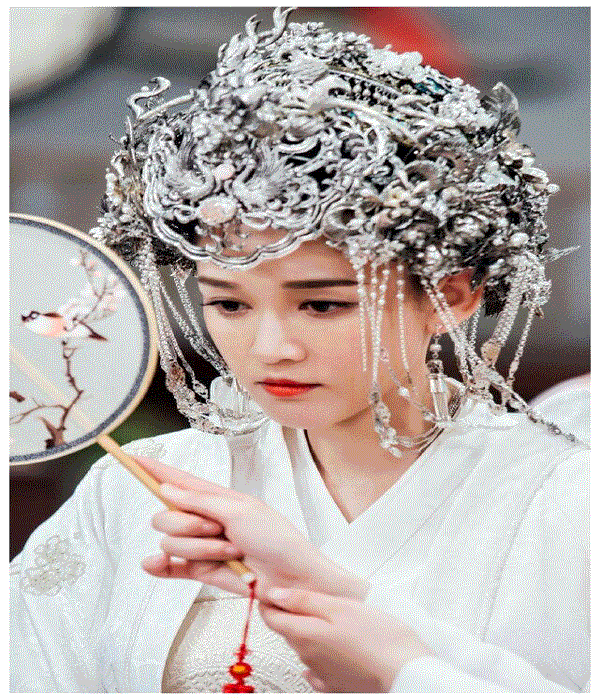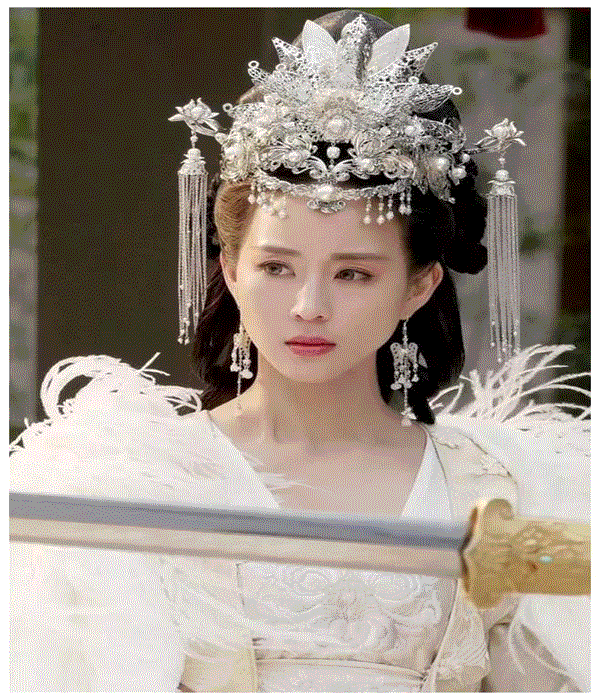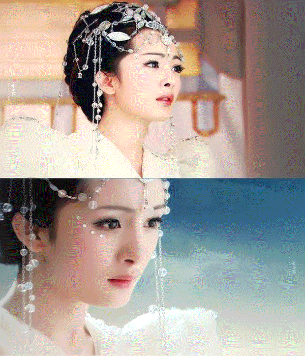 Dương Tử - Trần Kiều Ân cũng từng gây xôn xao khi xuất hiện với tạo hình váy trắng, mũ miện cầu kỳ. Với Dương Tử, cảnh xinh đẹp này xuất hiện trong phim Hương mật tựa khói sương. Còn Trần Kiều Ân, cảnh tượng này xuất hiện khi đóng Độc cô hoàng hậu.