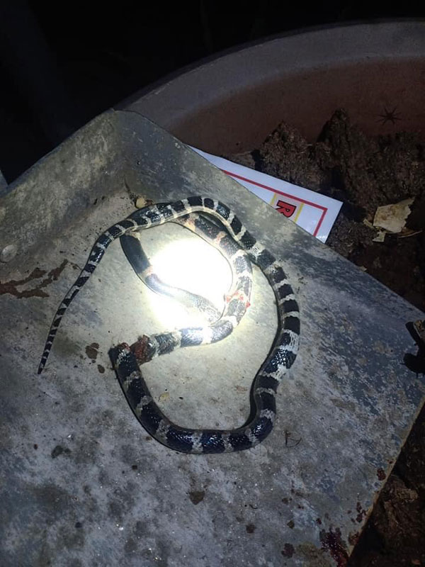 Con rắn cạp nia bò vào nhà Quỳnh là con trưởng thành. Cả 3 lần, rắn đều bò vào nhà lúc đêm tối.