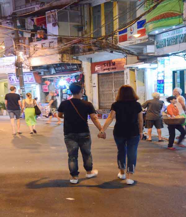 Tôi nắm tay em kéo sát vào mình: