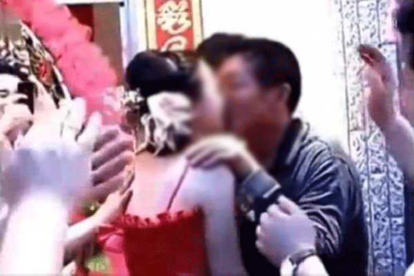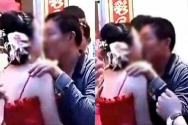 Theo QQ, những hình ảnh này được ghi lại ở một đám cưới ở Trung Quốc khi nhà trai vừa đón cô dâu về nhà. Có rất đông quan khách hai họ tập trung chúc mừng cho đôi tân lang tân nương. Trong lúc phấn chí, một lời thách đố đã được đưa ra rằng nếu cô dâu và bố chồng dám hôn nhau trước mặt họ thì cả hai sẽ được ngay một khoản tiền mặt.