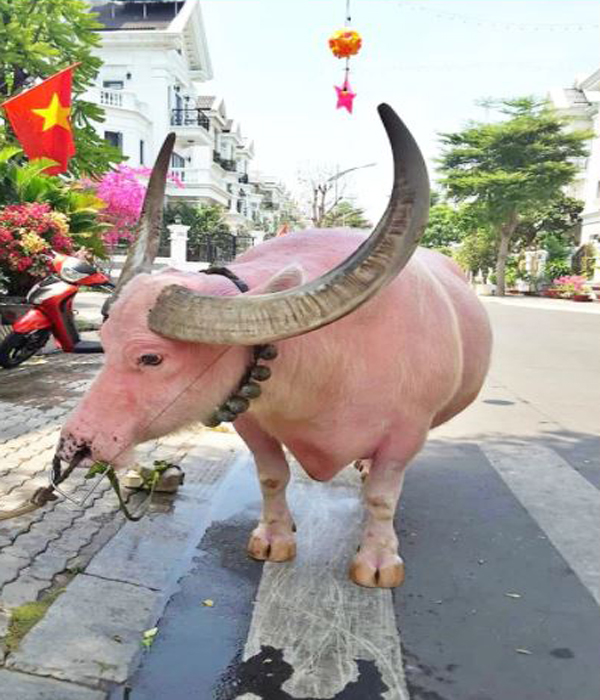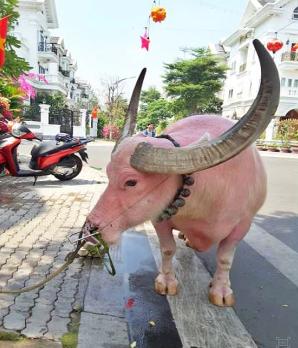 Chú trâu hồng này thuộc một giống trâu Thái Lan.