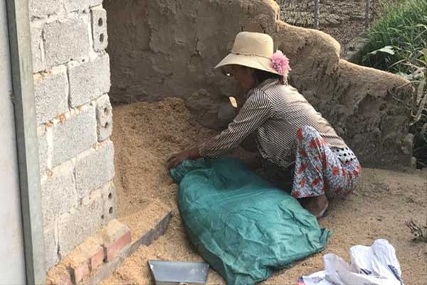 Người mẹ khốn khổ xin từng bao trấu về đun bếp.