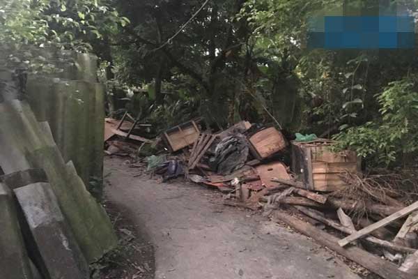 Lối dẫn vào nhà ngổn ngang đồ phế thải.