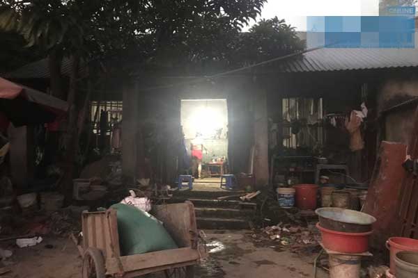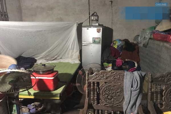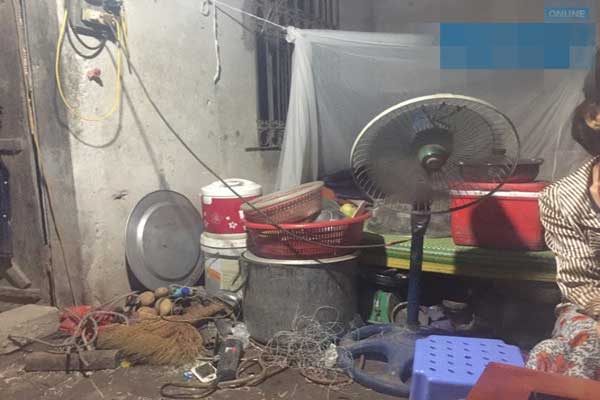 Theo lời kể của anh Hoàn, trước kia gia đình sống trong căn nhà lụp xụp. Mỗi mùa mưa đến, nước dột tứ tung. Vài năm gần đây, chính quyền xã xây tặng nhà tình nghĩa. Ngôi nhà mới nằm lọt thỏm giữa cây cối rậm rạp. Phía ngoài sân vườn, các thùng, chai nhựa vứt ngổn ngang. Cỏ mọc lổn nhổn, đã lâu không có người dọn dẹp, quét tước. Những cành cây mục nát nằm rải rác khắp sân. Trời nhá nhem, khung cảnh càng trở nên ảm đạm...