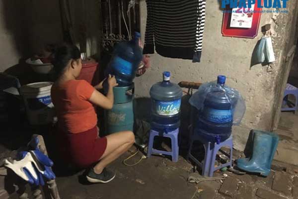 Chị Án đang cố chắt nốt ít nước trong chiếc bình.