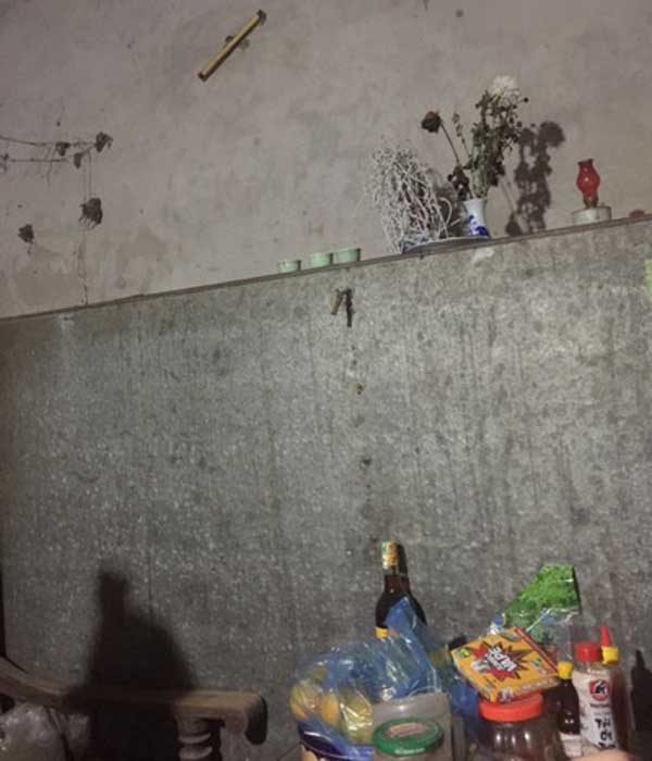 Bàn thờ nhà bà Hường đã tắt hương từ lâu, hoa trong lọ héo úa.