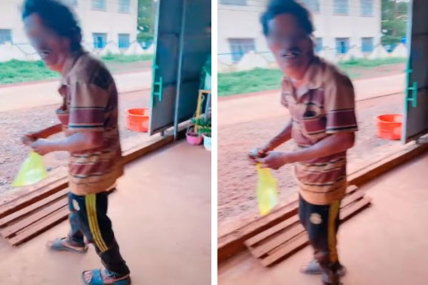 Người đàn ông này đã vào một cửa hàng tạp hóa để mua đồ trong khi người phụ nữ thì đứng cầm máy ảnh để quay. Nhìn từ xa có thể thấy có vẻ như ông bị khuyết tật ở vùng cổ khiến cho phần đó bị bành to hẳn ra so với khuôn mặt. Ấy thế nhưng, thay vì cảm thông thì bà mẹ trẻ lại liên tục nói rằng: "Bé lên quán mà gặp ông này là sợ mất hồn mất vía luôn nè. Cho nên mấy bạn nhỏ ít ít lên quán nha. Lên quán đòi linh tinh là gặp ông này ổng bắt đó nghe. Ông ấy say rượu sợ lắm luôn đó. Mấy bạn nhỏ bớt bớt ăn hàng nha".