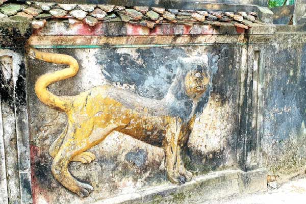Ngôi đền có ba tòa, bao gồm thượng điện, trung điện và hạ điện. Quy mô kiến trúc không lớn nhưng sự cổ kính và linh thiêng của ngôi đền là dấu ấn đặc biệt nhất.