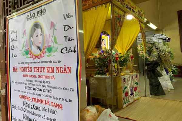 Linh cữu diễn viên Kim Ngân hiện quàn tại chùa Ấn Quang, Quận 10 (TP.HCM) vào chiều ngày 1/8. Lễ di quan diễn ra vào sáng 3/8. Ngày 2/8, một số nghệ sĩ đã đến nhà riêng của cố diễn viên Kim Ngân để chia buồn cùng gia quyến.