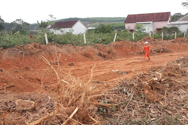 “Bọn em cải tạo vườn cho người dân và tận dụng đất để đưa đi làm vật liệu san lấp” – Người lái máy xúc đi theo PV thông tin.