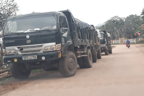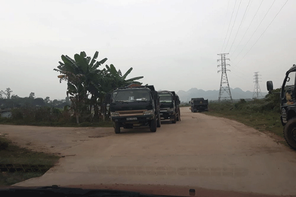 Sau khi ghi nhận hiện trường xong, PV đi ra theo con đường đất dẫn vào khu vực nói trên. Trên đường ra, hàng chục xe tải loại trọng tải trung bình khoảng 4 tấn nườm nượp đi vào khu vực trên, do đường nhỏ nên chúng tôi phải hết sức vất vả dừng lại nhiều lần để tránh các xe tải đang đi vào khu vực khai thác với thái độ hết sức khẩn trương.