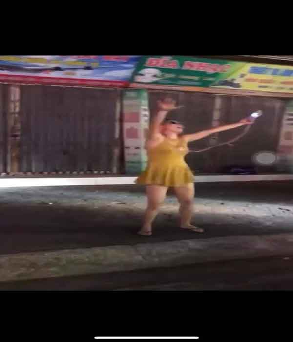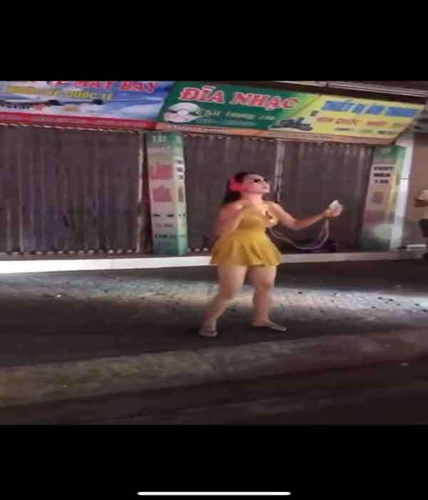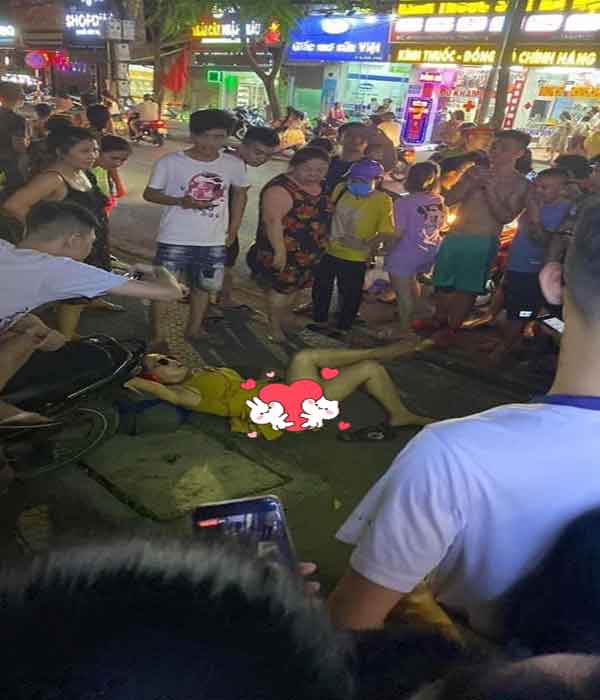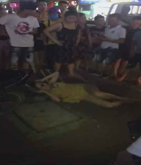 Sau một hồi, cô gái mệt quả nên đành nằm ra đường