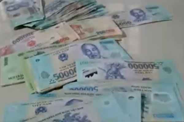 Số tiền lớn mà ông Hùng đã bàn giao lại đầy đủ cho khách. Ảnh cắt từ clip.