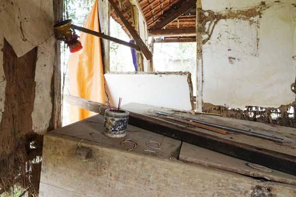 Nhà hư hỏng, góc để thờ phụng, hương khói cho chồng cũng chẳng còn.