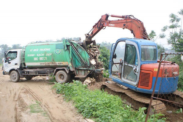 Dùng máy múc, xe chở rác chuyên dụng và xe tải chở về địa điểm tiến hành xử lý