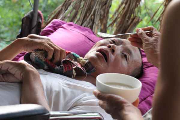 Chứng kiến hình ảnh người vợ gầy gò, khắc khổ bón cho người chồng nằm liệt giường từng muỗng cháo, rồi bé Thanh Hoài (mới 8 tuổi) lâu lâu lại xoa tay, bóp chân cho bố rồi hồn nhiên hỏi “bao giờ thì bố đi lại được hả mẹ?” khiến ai cũng nghẹn ngào.