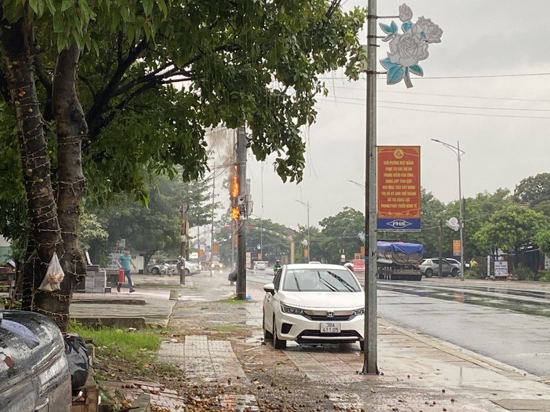 Theo đó vào khoảng 7h sáng 10/10 một trụ điện ở trước số nhà 59 đường Lê Thánh Tông, phường Kỳ Trinh, TX Kỳ Anh (Hà Tĩnh) bất ngờ phát hoả cháy lớn.