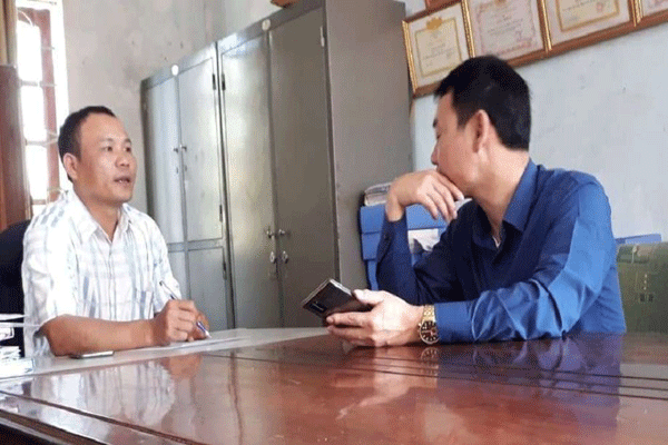 Ông Nguyễn Chiến Thuật – Trưởng Công an xã Kỳ Đồng (bên trái) đang nói về vụ tai nạn
