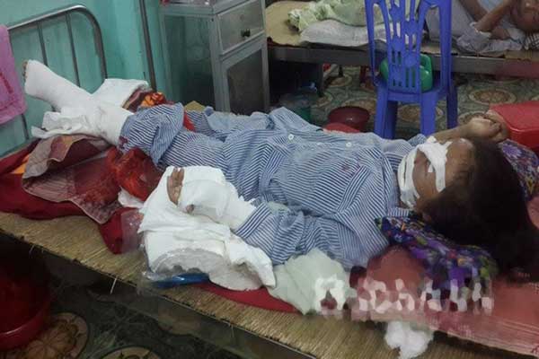 Ngoài bị đứt 3 gân ở tay và một gân ở chân chị H. còn bị thương rất nặng ở vùng mặt