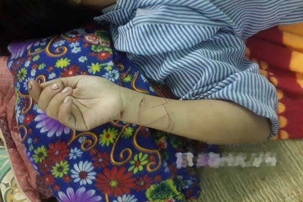 Các vết thương trên tay chị Dương Thị H. trong lúc giằng co, chống đỡ chồng