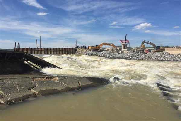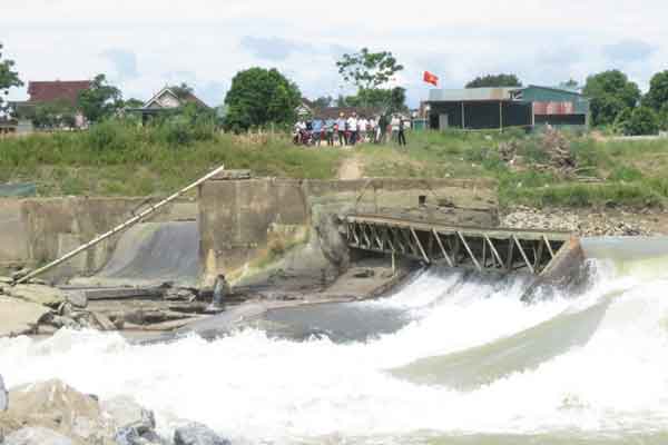 Trước đó, như đã đưa tin, sáng 7/6, khoang số 10, 11 tại đập Bara Đô Lương nằm trên sông Lam bị gãy sập hoàn toàn.