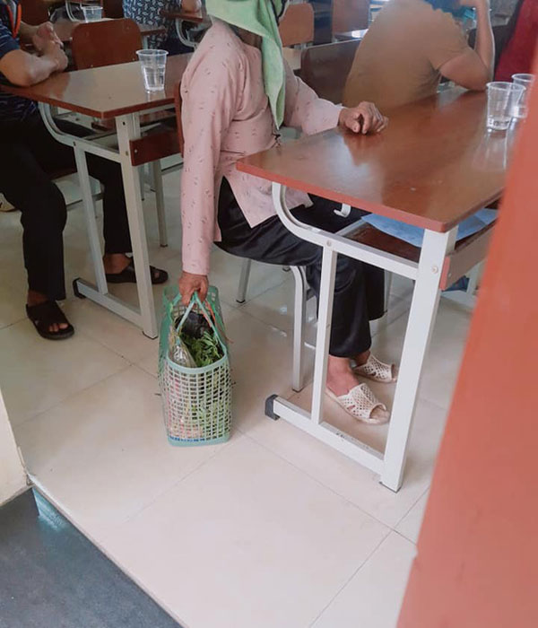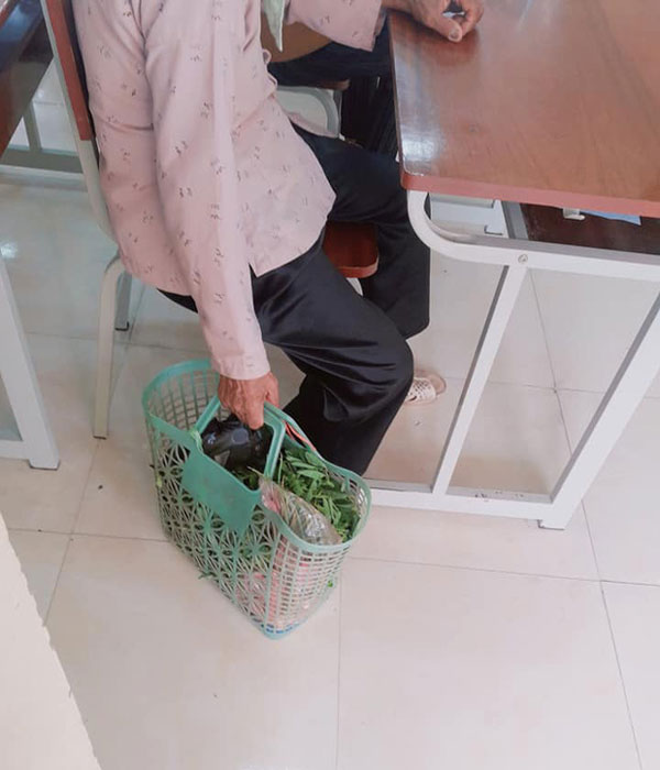 Mới đây, trên fanpage Trường người ta - một trang thu hút cộng đồng lứa tuổi học sinh trao đổi, tương tác cực khủng đã chia sẻ 1 hình ảnh thú vị. Theo đó, một người bà với vóc dáng gầy guộc trong bộ đồ bà ba quen thuộc, đầu chùm khăn, chân mang đôi dép tổ ong đến tham dự buổi họp một cách chăm chú. Nhưng điều khiến người ta chú ý hơn là bởi chiếc giỏ xách bà mang theo.