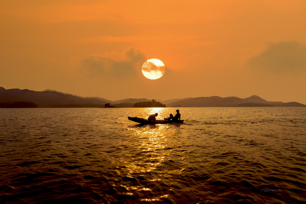 Hoàng hôn buông vàng trên hồ Kẻ Gỗ
