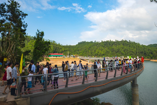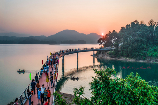 Đặc biệt, không chỉ là cầu nối, cây cầu còn là điếm nhấn nổi bật của du lịch hồ Kẻ Gỗ, thu hút rất đông du khách đứng ngắm cảnh, dạo chơi và chụp ảnh lưu niệm.