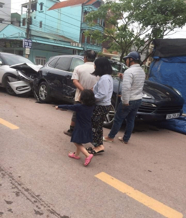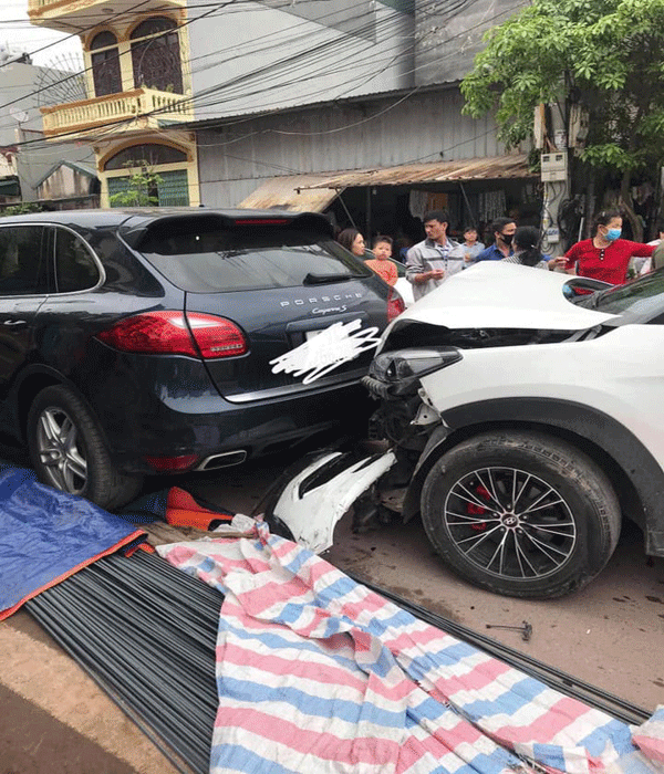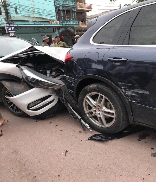 Hình ảnh từ hiện trường cho thấy xe ô tô hiệu Hyundai Tucson đ.âm vào đuôi siêu xe Porsche Cayenne S. Trong khi đó, chiếc siêu xe kia bị móp đuôi và phần vỏ bên phải. Hai tài xế được cho là không bị thương đáng kể.
