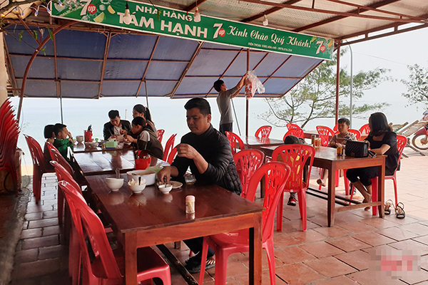 Một số gia đình lại về bãi biển Thiên Cầm đầu xuân để được thưởng thức hải sản. Mở cửa xuyên tết để phục vụ khách du lịch, anh Phan Đình Tuẩn - chủ nhà hàng Tám Hạnh cho biết: Như năm ngoái ra tết là khách chật cứng nhưng năm nay thì khách chưa nhiều. Từ mùng 1 tết đến nay, nhà hàng chúng tôi phục vụ khoảng 20 đoàn khách vào ăn uống. Giá cả dịch vụ thì vẫn ở mức ổn định như ngày thường, chỉ có ghẹ là đắt hơn một chút.