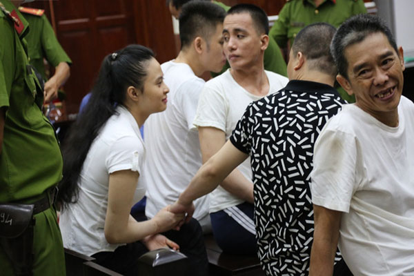 Mặc dù người đối mặt với án tử, người còn lại lĩnh 16 năm tù giam song 'ông trùm ma túy' Văn Kính Dương và người tình Ngọc Miu vẫn không ngừng tươi cười, dành cho nhau những cử chỉ thân mật, hết nắm tay lại đến ôm hôn nhau đắm đuối nhau tại phiên xét xử.